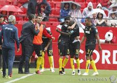 Fueron veinte minutos en los que no estaba saliendo nada bien. Todos los jugadores del Sevilla se encargaban de evitar que Rochina recibiera fácil y lanzara el Granada a la contra, mientras que estos se veían incapaces de acercarse con algo de chicha a la meta de Beto, que ayer se despedía del Pizjuán. Alguna carrera de Peñaranda, las pocas veces que los blancos dejaban margen, daban ánimo a una afición que sabía el Rayo estaba perdiendo. El venezolano tuvo la primera en el 8' en un zapatazo repelido por el luso. Fue el único disparo a meta del Granada hasta el 0-1. En el mismo fue fundamental Doucouré, que hasta ese momento parecía estar superado por la situación. La primera vez que se fue arriba con la pelota controlada llegó el gol. Condujo hasta tres cuartos de campo para dársela a El Arabi, que de forma magistral vio la entrada en perpendicular de Cuenca y se la puso bombeada para que el catalán sólo tuviera que cambiársela de lado a Beto. Justo antes del descanso. A pedir de boca.
